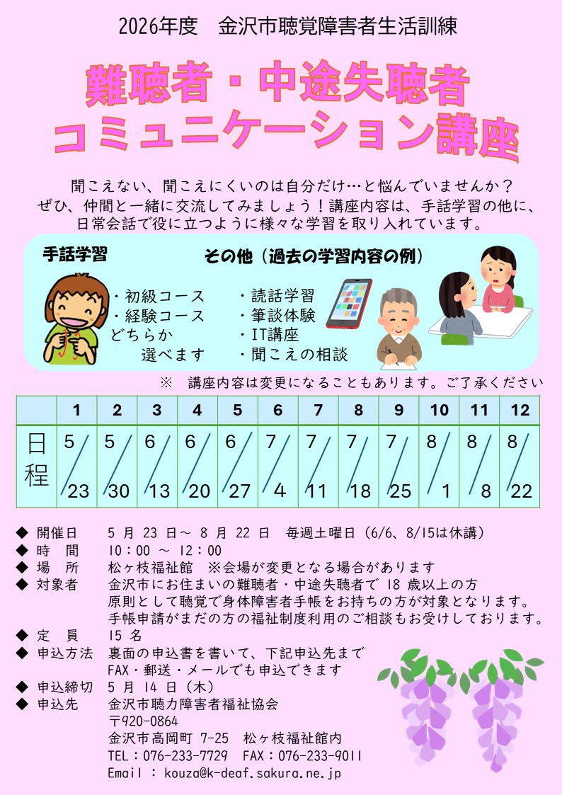 2026年度 難聴者中途失聴者コミュニケーション講座