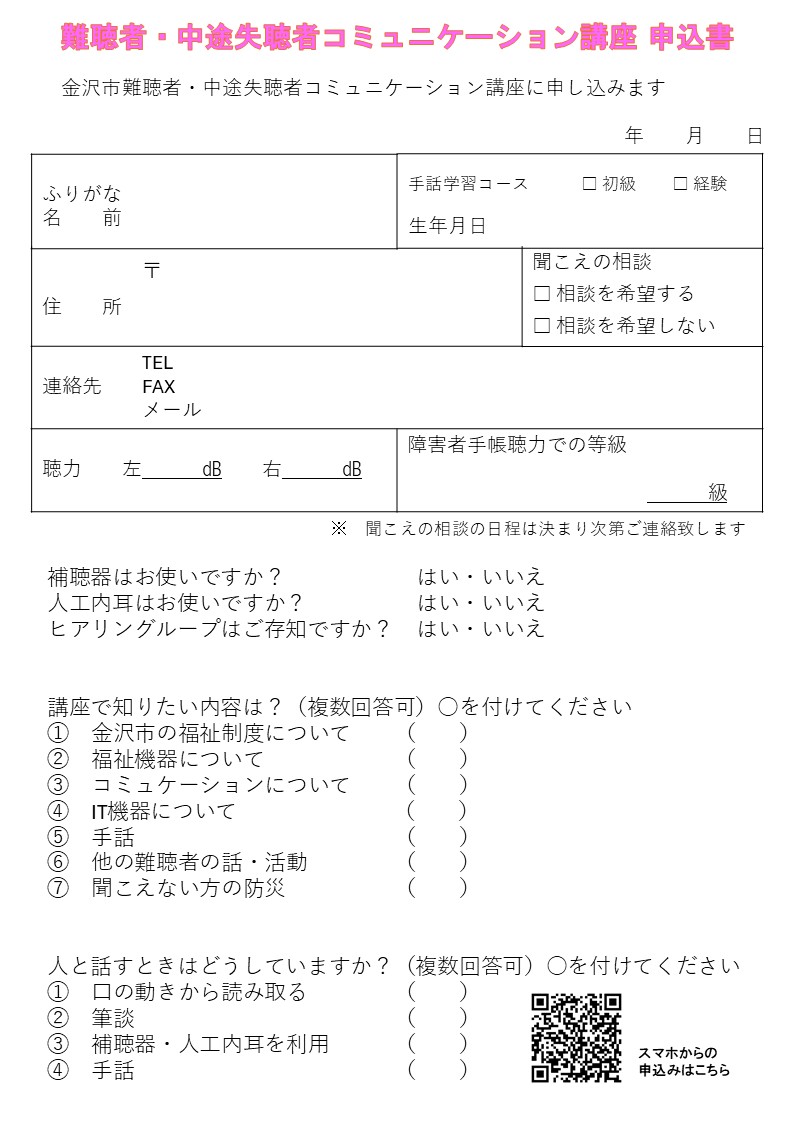 【対象者】金沢市にお住まいの難聴者・中途失聴者で18歳以上の方