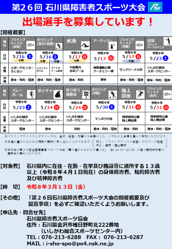 第26回石川県障害者スポーツ大会