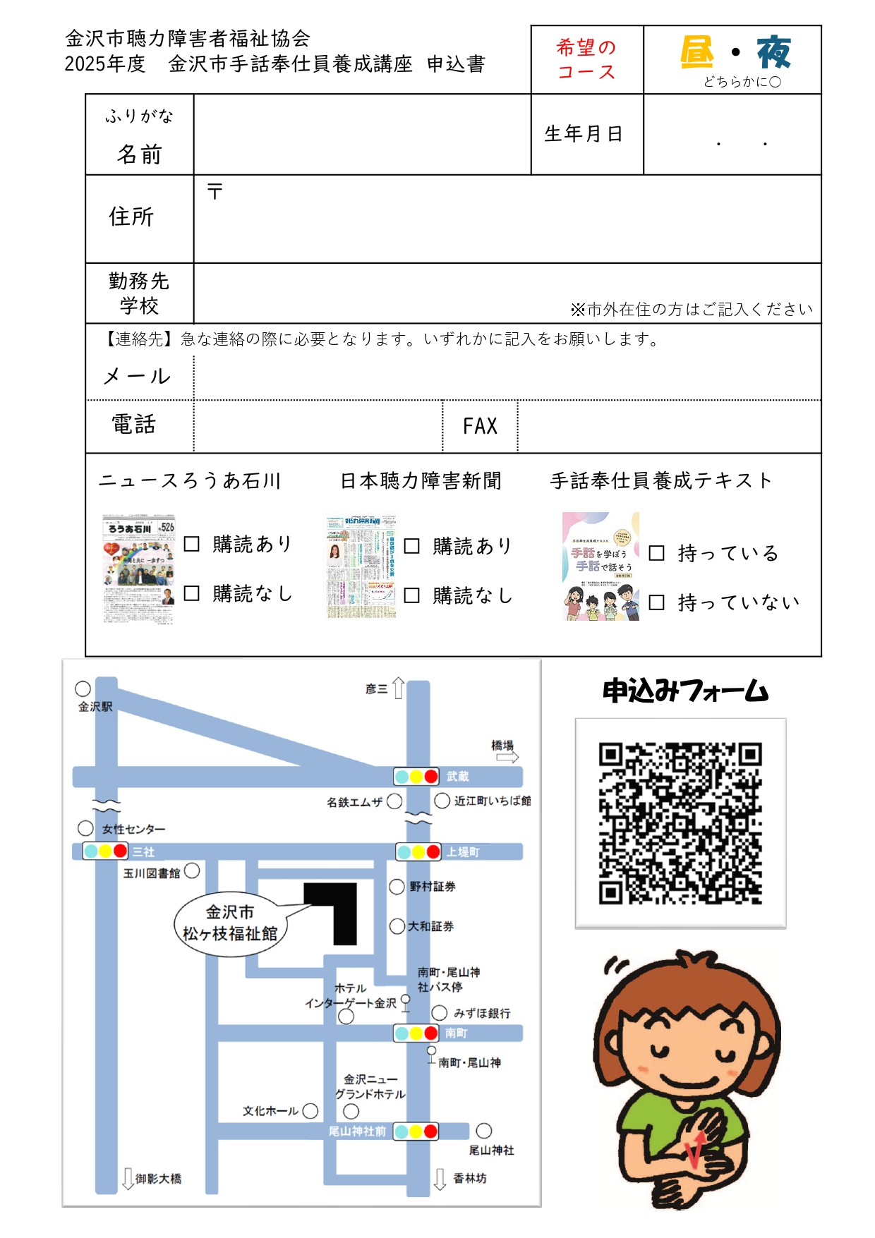 【 受講料 】教材費5,000円(ろうあ石川購読中の方は3,000円)