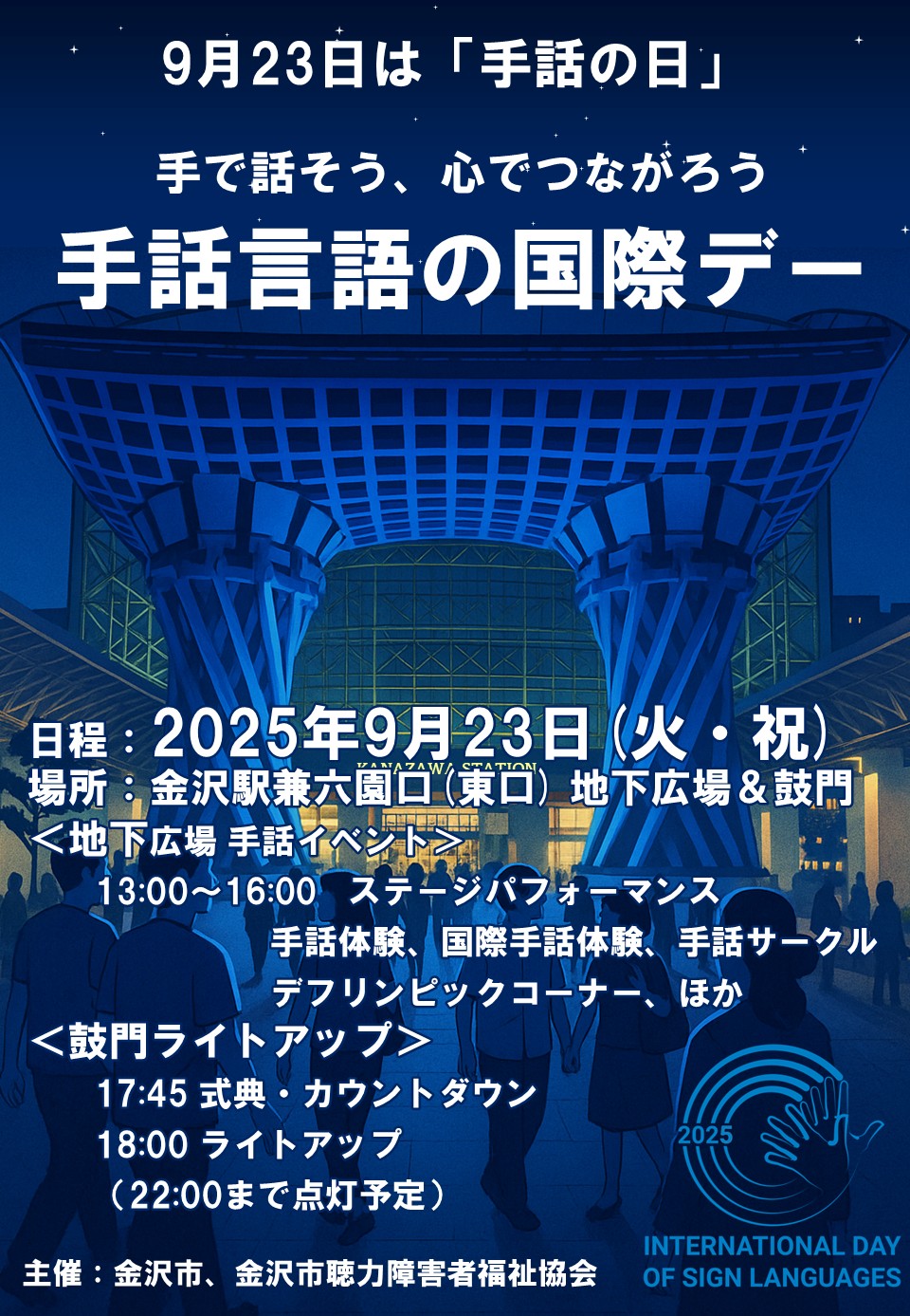【北陸放送】「手話の日」に鼓門青く 市聴力障害者協 金沢駅で催し 毎年9月23日に制定 デフリンピックもPR