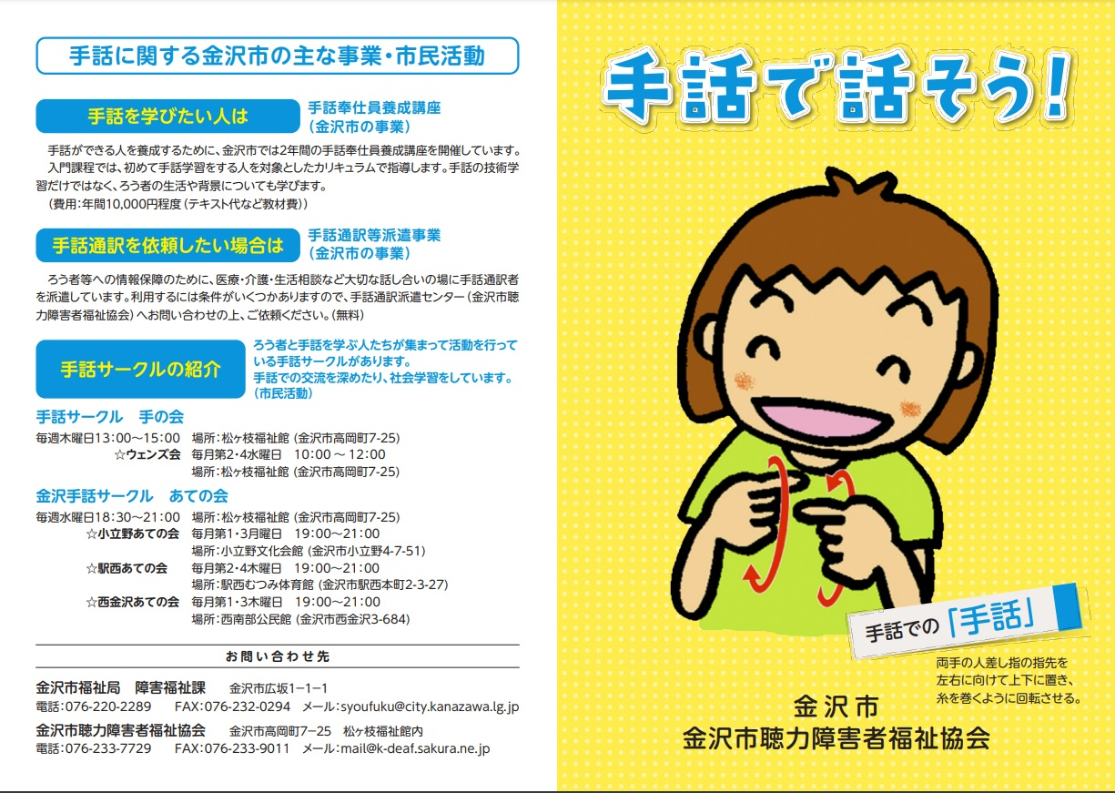 金沢市が開催するイベントに手話体験コーナーを開設しています。