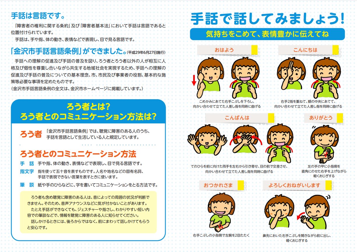 平成29年に手話言語条例を制定した金沢市は、手話の普及に向けていくつかの取り組みをしています。