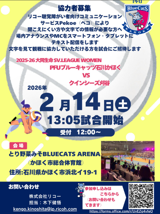プロバレーボール観戦(ブルーキャッツ石川かほくVSクインシーズ刈谷) ※文字情報付き
